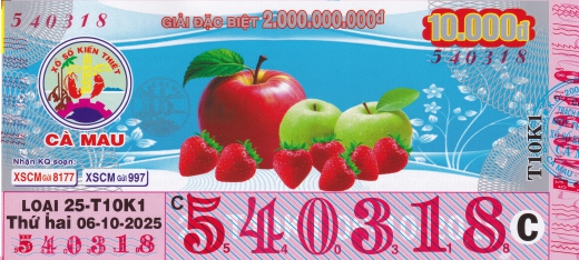 Mẫu vé số Miền Nam ngày 06/10/2025