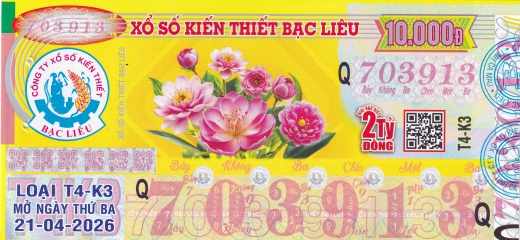 Mẫu vé số Bạc Liêu ngày 21/04/2026