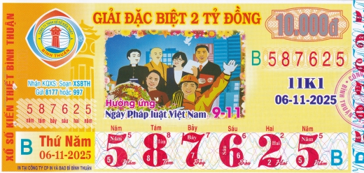 Mẫu vé số Bình Thuận ngày 06/11/2025