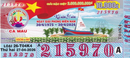 Mẫu vé số Cà Mau ngày 27/04/2026