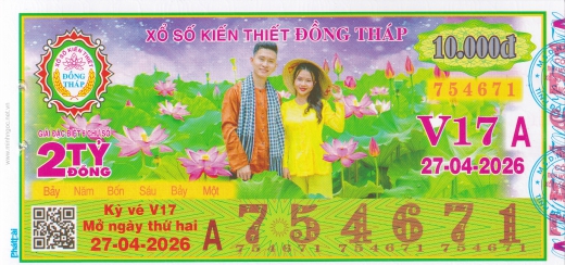 Mẫu vé số Đồng Tháp ngày 27/04/2026