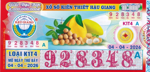 Mẫu vé số Hậu Giang ngày 18/04/2026