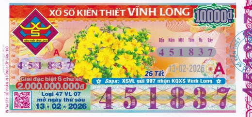 Mẫu vé số Vĩnh Long ngày 27/03/2026